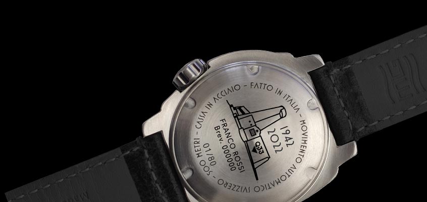 - GEHÄUSE aus Edelstahl AISI 316L, hergestellt in Italien, Durchmesser 43 mm, Stärke 13 mm, aus einem Stück gefertigt und satiniert